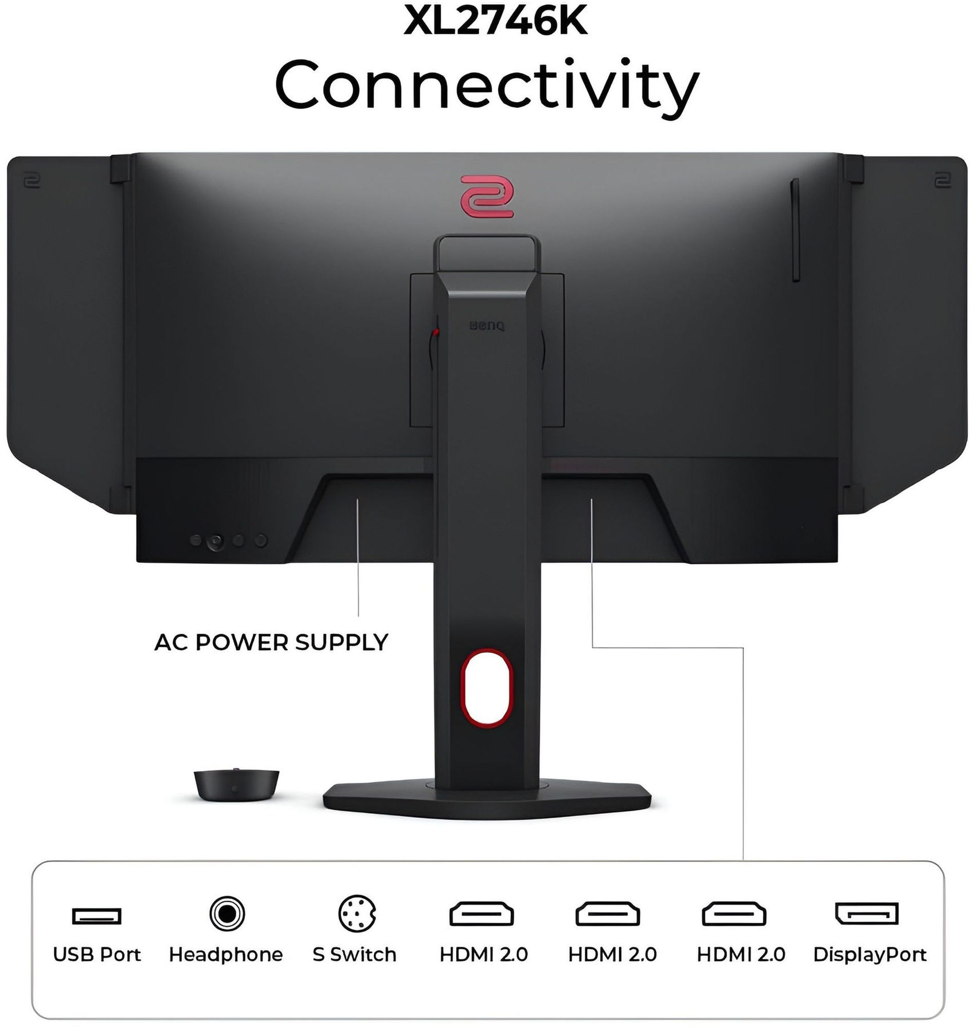 Le BenQ ZOWIE XL2746K est plutôt “plug-and-play” si vous jonglez entre plusieurs sources : il propose plusieurs entrées HDMI en plus du DisplayPort. Typiquement, vous pouvez garder un PC sur DisplayPort et réserver les HDMI à une console ou un second PC. Bonus simple mais utile : la prise casque permet de sortir l’audio directement depuis l’écran (pratique quand la source est une console).